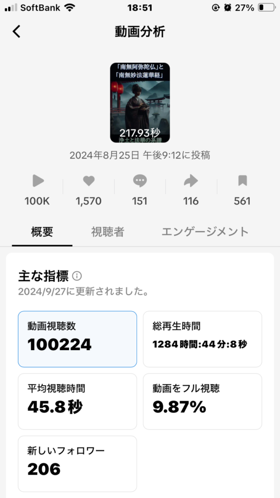 あれから、おかげさまでtiktokの一つの投稿が「14万弱再生」「2000オーバーいいね」「166コメント」突破しました。(令和7年4/5時点)